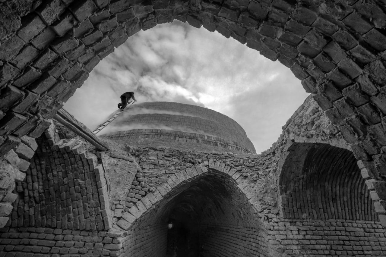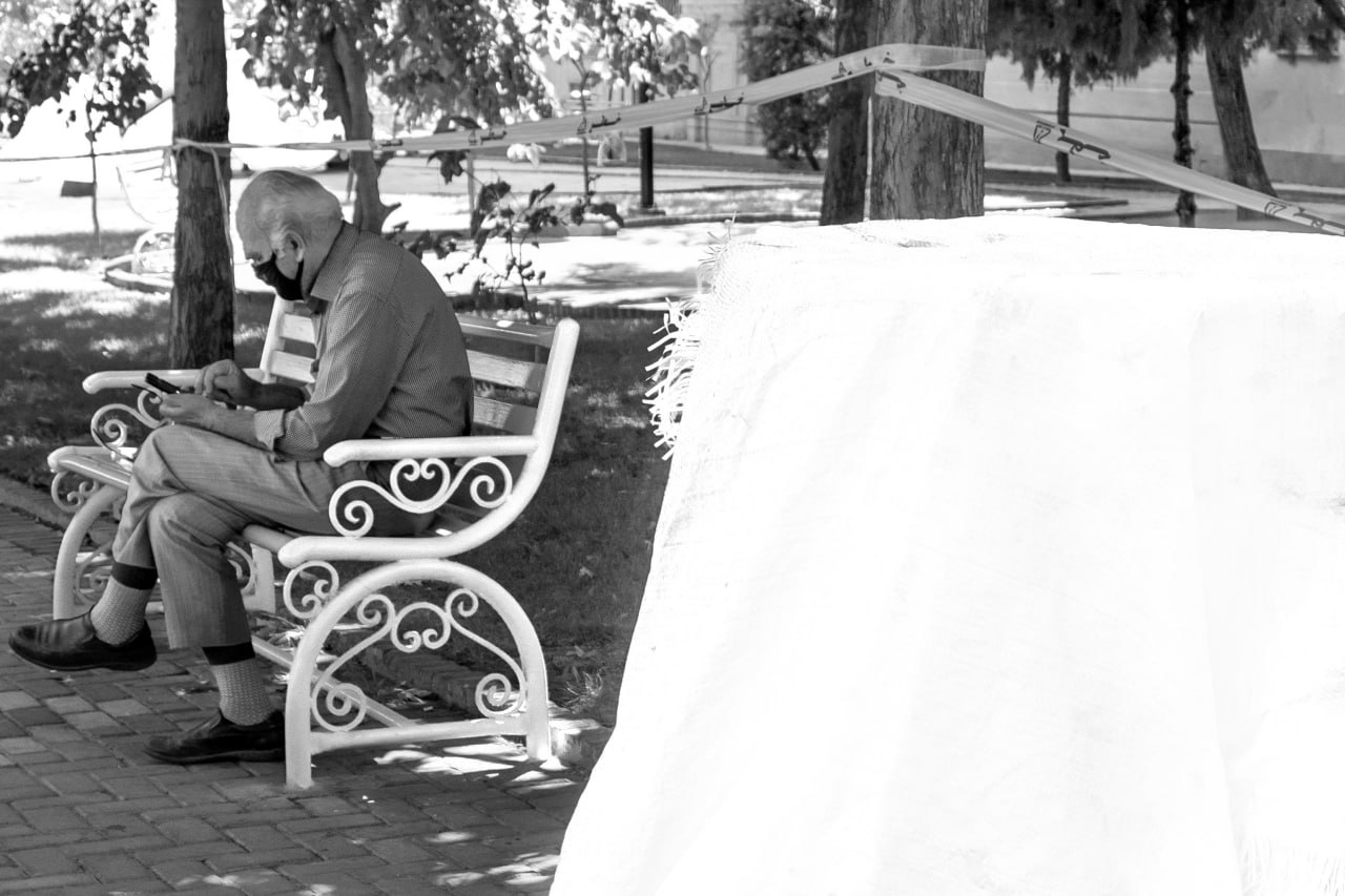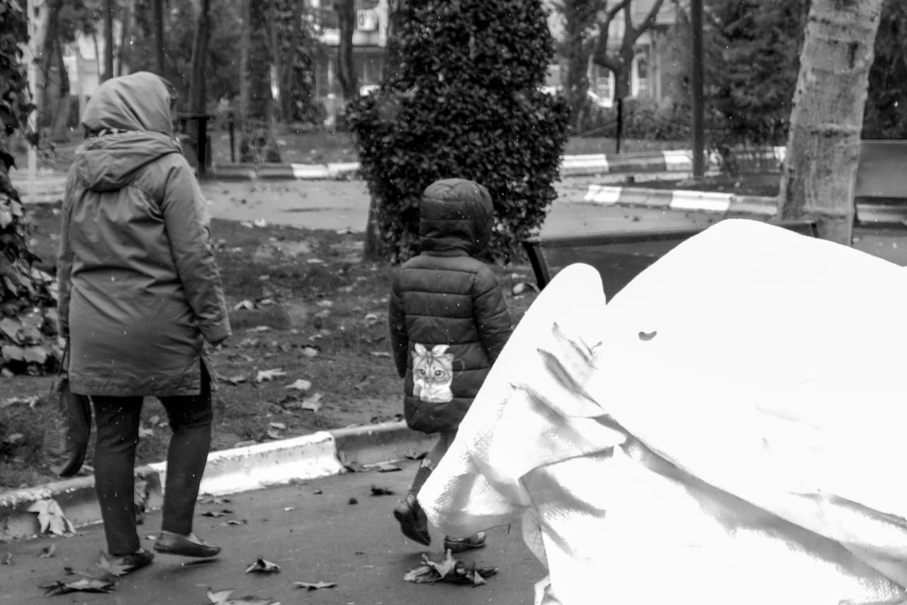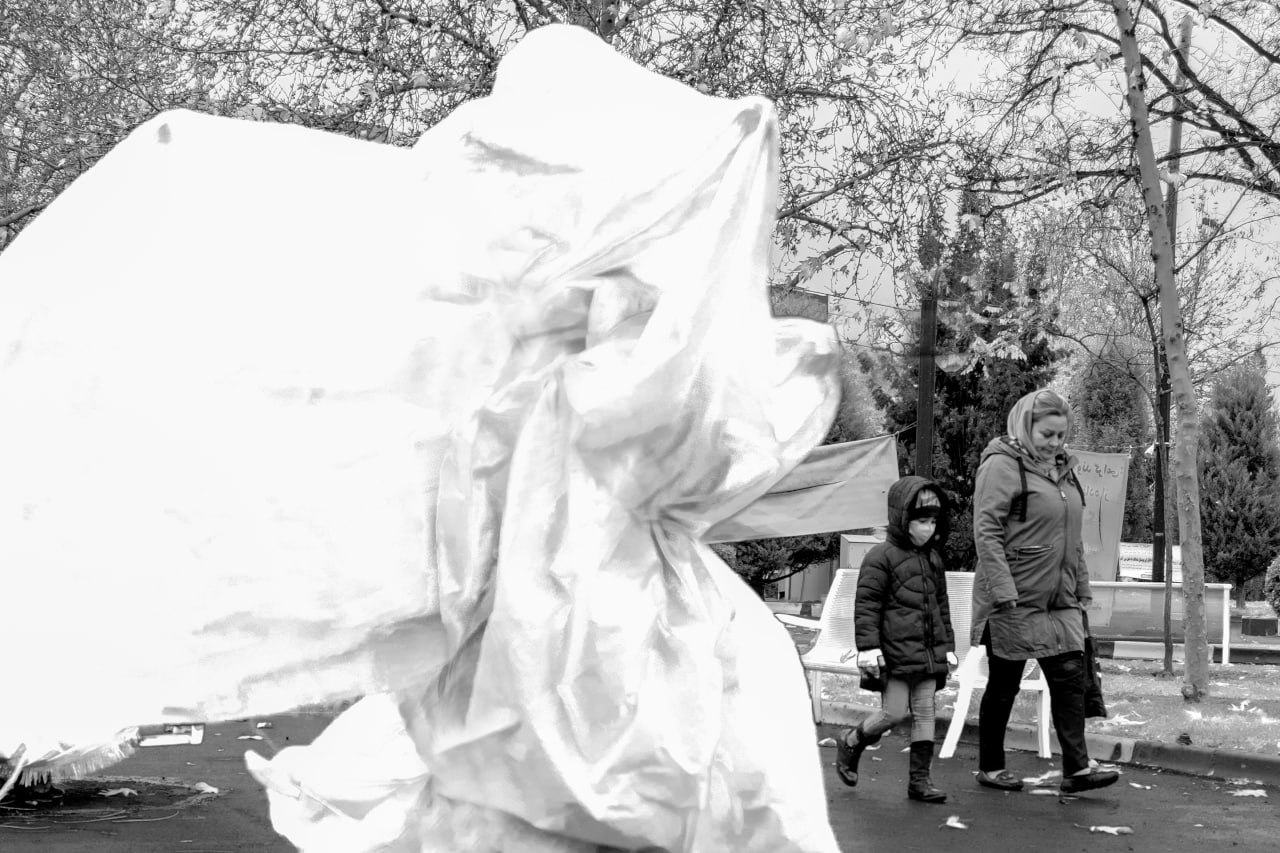 عامل بردبار، در این تجربه بصری، به سراغ وسایل ورزشی پوشاندهشده در پارکها رفته؛ مجسمههایی خاموش پیچیده شده در گونیهای آبی که در ارائه سیاه و سفید ، آنها به هیبت های سفید رنگ، غریب و رازآلود تبدیل شده اند . این تصاویر نه فقط مستندِ یک واقعیت بیرونیاند، بلکه بازتابی از اضطراب، انزوا و تأمل در روزهاییست که جهان را در سکوت فرو برده بود.