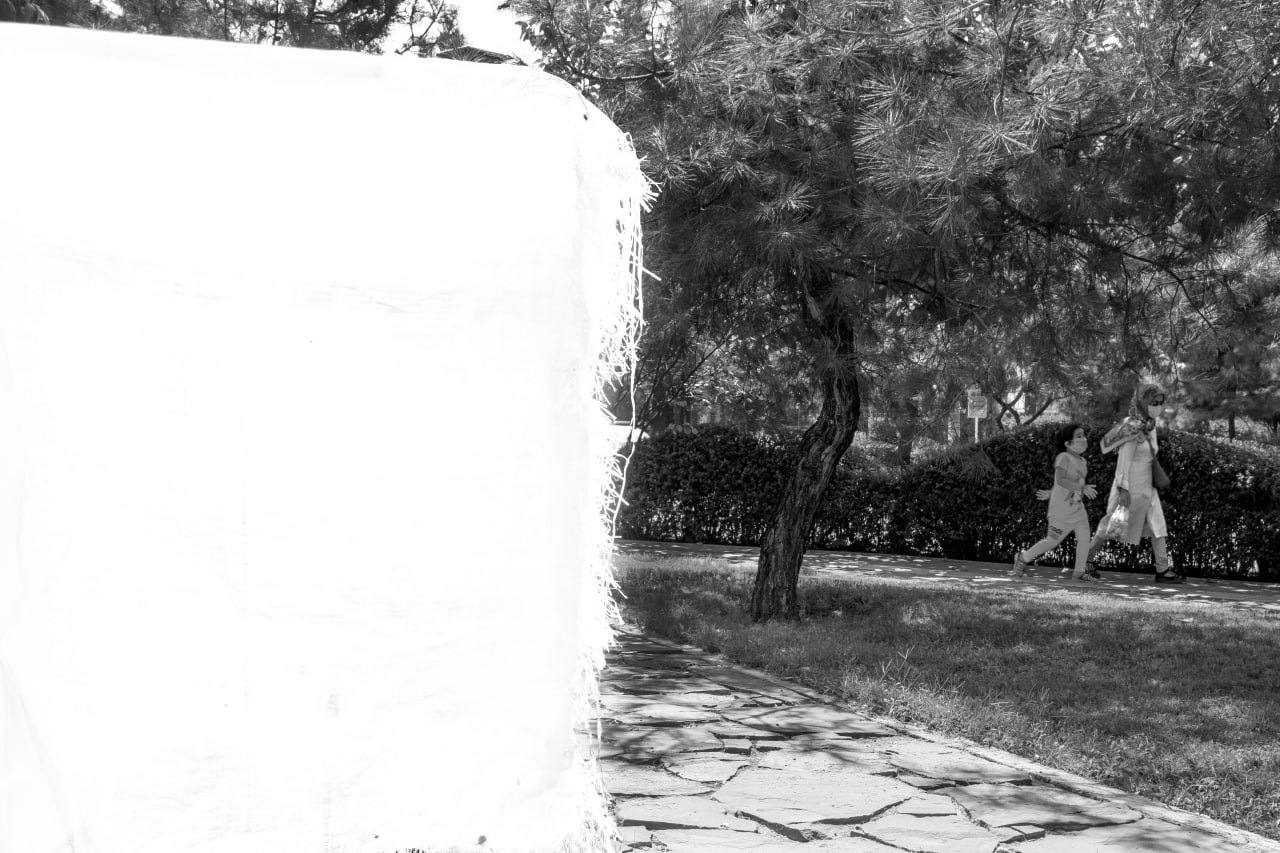 با این همه، مجموعه، گاه در دام تکرارِ فرمی میافتد و خطر یکنواختی، اندکی از ضرباهنگ درونی آن میکاهد. آری اگرچه این یکنواختیِ ناخواسته را می توان بخشی از مضمون اثر در نظر گرفت؛ زیرا تکرار، جوهر روزهای قرنطینه بود؛ روزهایی که از دلشان فقط تفاوتهای ناچیز برمیخواست، اما نباید از نظر دور داشت که آنچه رویکردِ انتخابیِ عکاس، بر عکسها تحمیل کرده است، امکان پرداختنِ معمول، به فضای عکس را سلب نموده است چرا که آنچه در اختیار عکاس باقی می ماند، قسمت کوچکی از کلیتِ کادری ست که بخش اعظم آن با سفیدی پر شده است... آنچه در نهایت باقی میماند، نه تصویر پارک و شهر و رهگذران، بلکه حسِ معلقی است که میان ما و واقعیت فاصله انداخته است. این عکسها، گویی خاطرهای را ثبت کردهاند که هنوز به پایان نرسیده؛ لکهای سفید بر حافظهی جمعی ما که هر بار نگریستن، بهجای وضوح، ابهام بیشتری میآفریند.