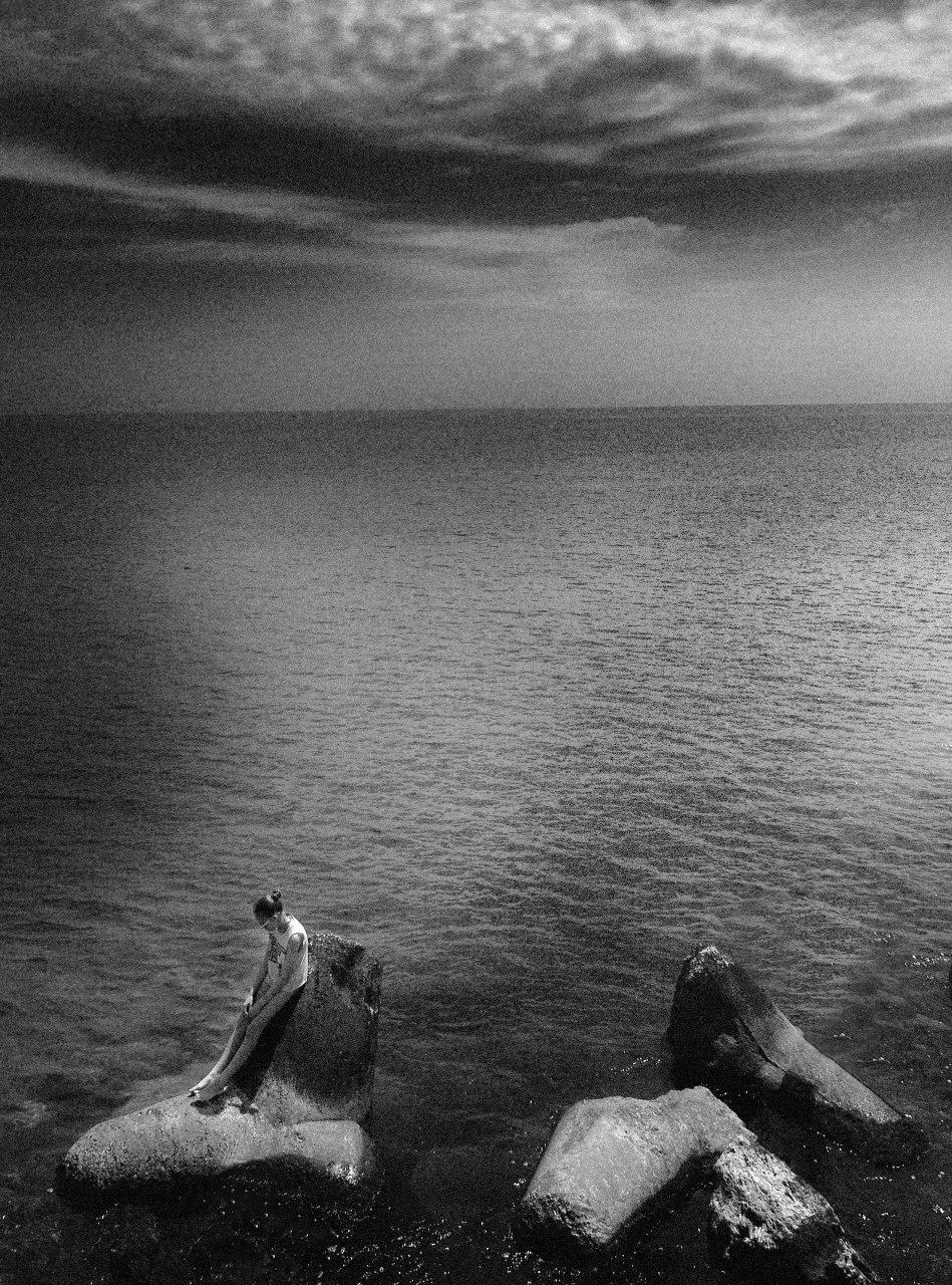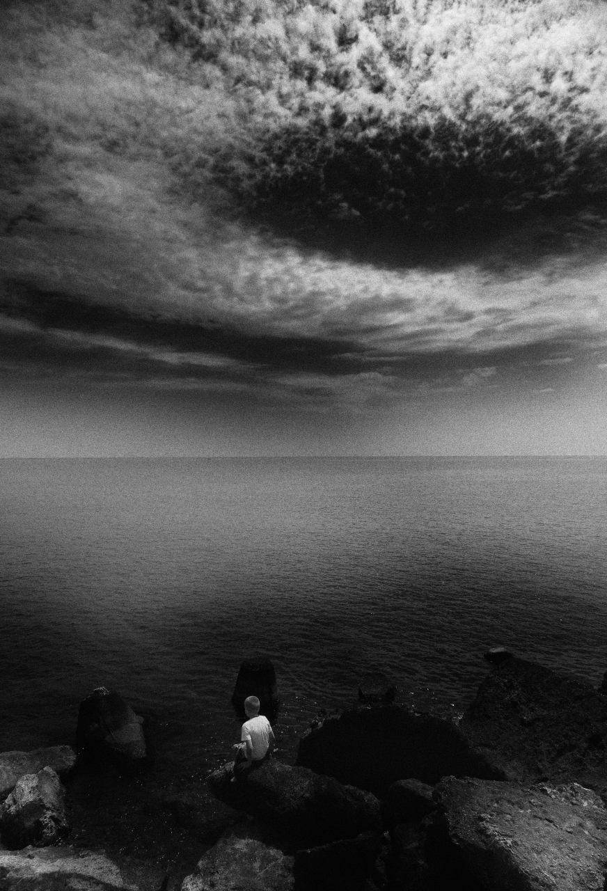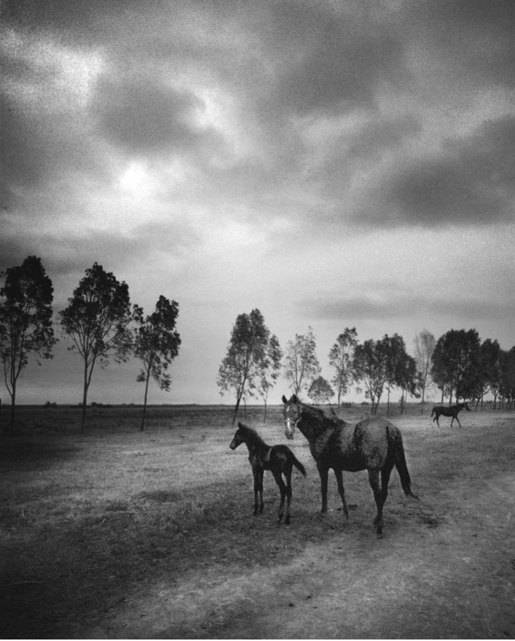 آسمان های عکسهای او پر شده از ابرهای دلهرهآور ، آسمان قرار نیست در عکسهای عمودی او خالی باشن، ایستایی و خشونت کادر عمودی این حجم از تضاد بین تنالیته های خاکستری را چند برابر می کند،