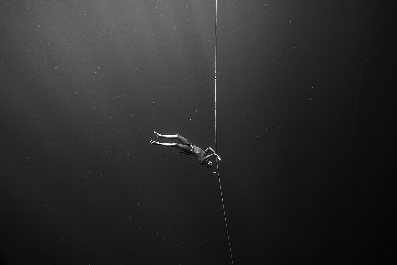عکس «معلّق» یک غواص آزاد را در جریان آبهای دریا نشان میدهد.