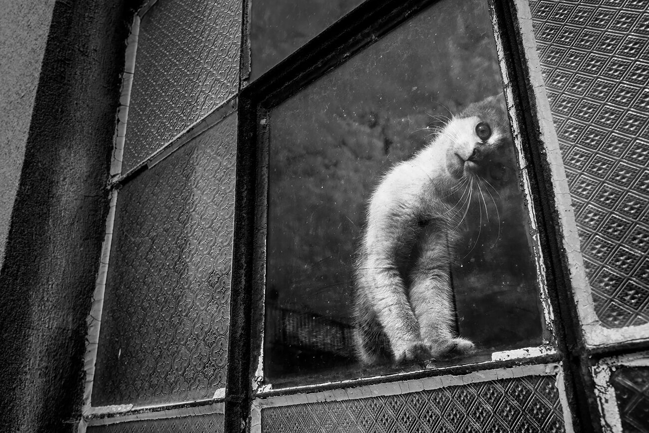 عکس بدون عنوان از مجموعه Animals، تصویری ساده از گربهای در پنجره خانه است.