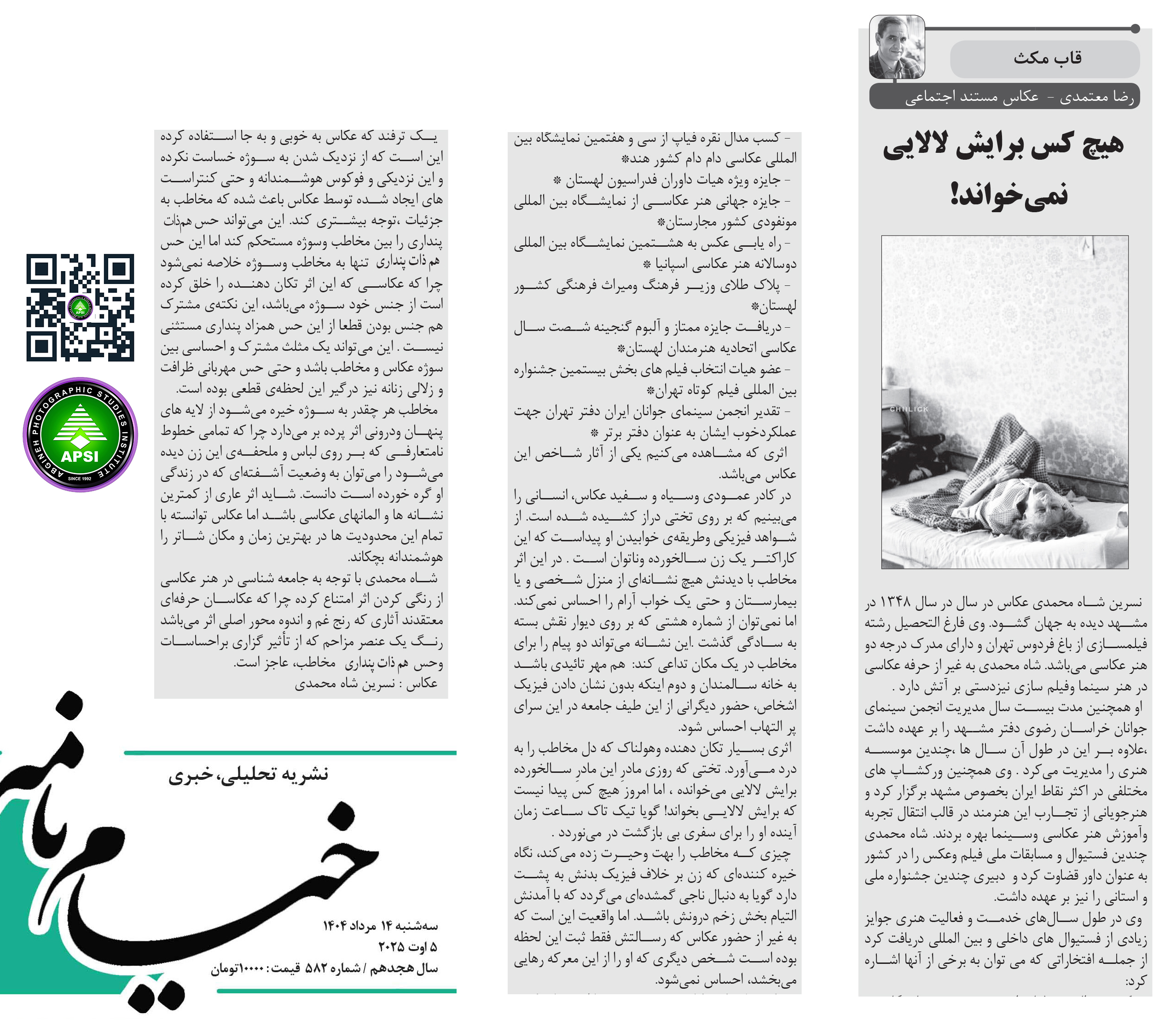 هیچ کس برایش لالایی نمی خواند / نقدی بر عکس نسرین شاه محمدی / رضا معتمدی